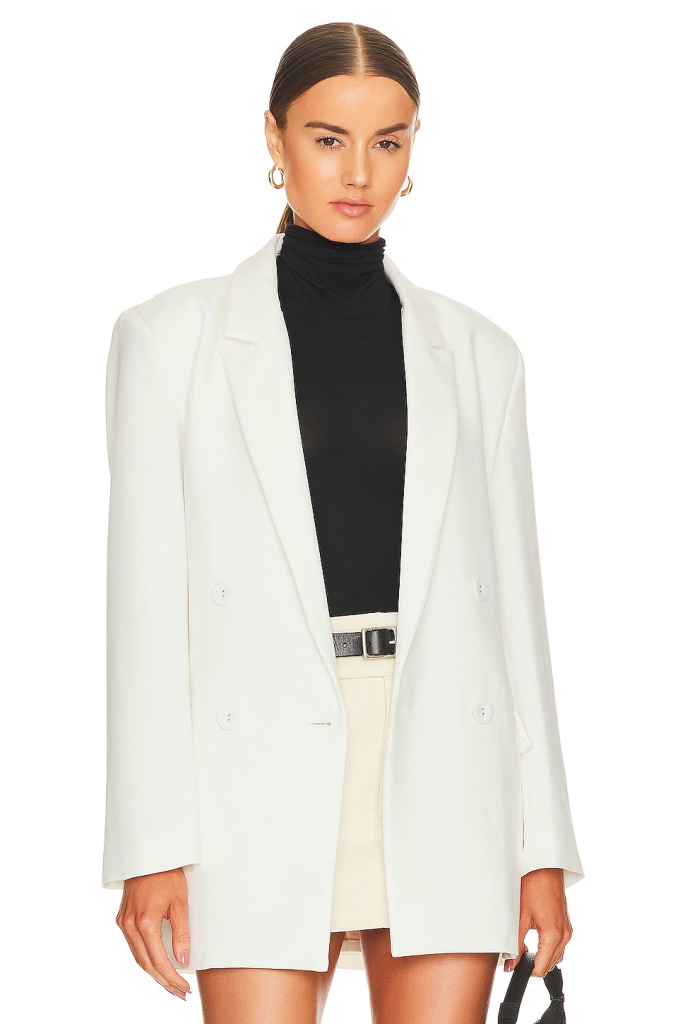 Now, let’s talk outerwear! The Bardot Maison Split Back Blazer in orchid white is the pièce de résistance of this outfit. This blazer adds a sophisticated edge while keeping things classy and refined with its structured silhouette and split-back detailing.