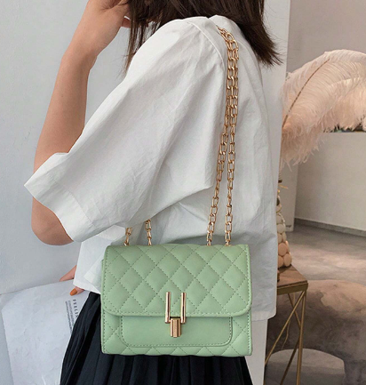 Last but not least, no outfit is complete without the perfect accessory. Enter the Women’s Fashionable And Minimalist Single Shoulder Multi-Functional Crossbody. This chic green square chain bag adds a pop of color and a touch of whimsy to the ensemble, tying everything together.